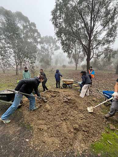 A cohort of student volunteers from a Sydney university had pulled up their sleeves to help tackle local projects on Monday after their coach rolled into Chiltern on Sunday afternoon.