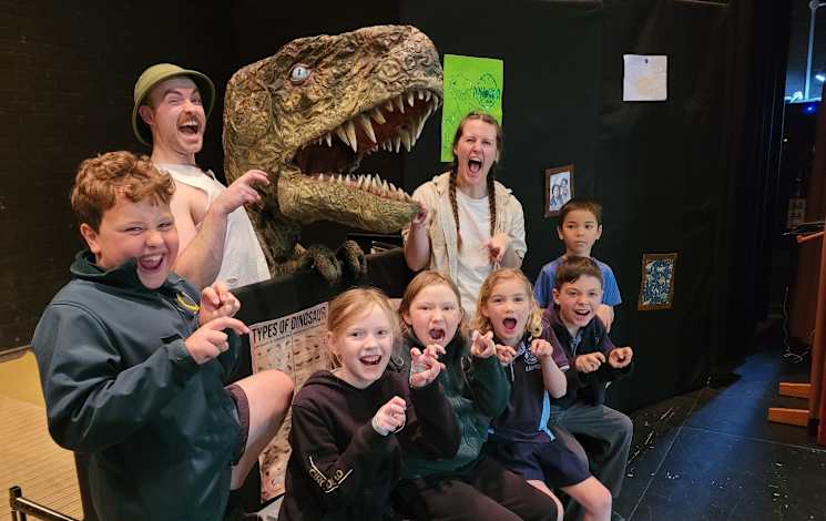 A dinosaur puppet in a theatrical performance held two weeks ago at Beechworth’s Memorial Hall hooked local primary school youngsters.