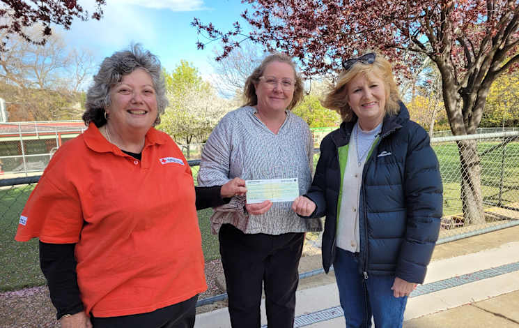 A delighted local primary school principal accepted a generous donation on behalf of the school from Red Cross branch members last week.
