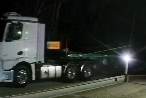 A white Mercedes Actros prime mover with two long green trailers was caught on CCTV arriving at a weighbridge at 4:20am.